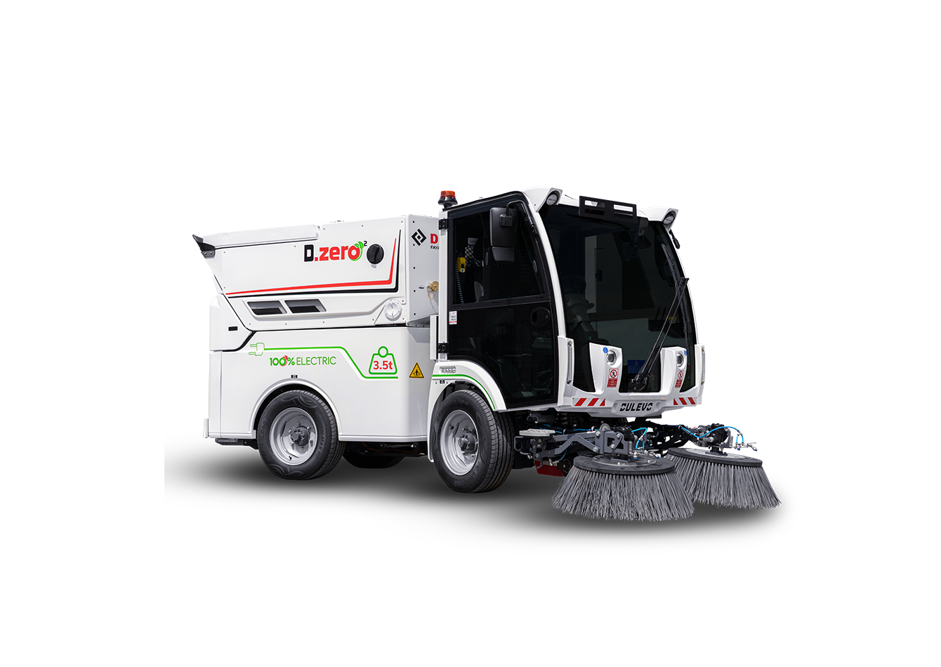 De Dulevo 850 is de compacte dieselvariant met een breedte van 1.145 mm, knikbesturing en een levertijd van 3 tot 4 maanden. De Dulevo Dzero2 is de volledig elektrische compacte straatveegmachine voor gemeenten met emissiedoelstellingen of zero-emissiezones. Beide machines werken op het stofzuiger veegprincipe en zijn bij uitstek geschikt voor binnenstedelijke inzet.