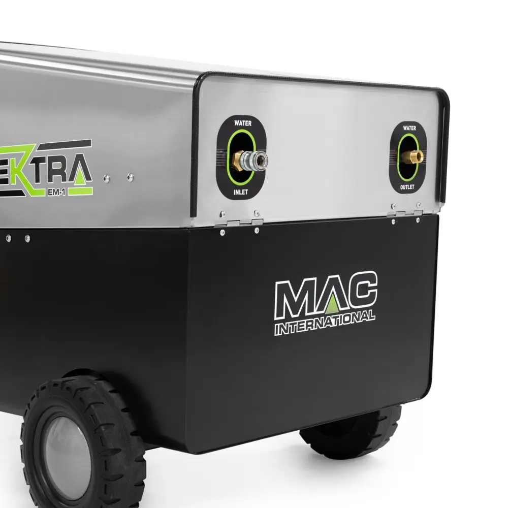 De Elektra EM4.1 heeft een gecoat stalen chassis met RVS kap, robuust en weerbestendig voor intensief gebruik. De componenten zijn eenvoudig bereikbaar voor service en de digitale thermostaat geeft directe controle over de exacte watertemperatuur. De volledig RVS uitvoering is de duurzame keuze voor omgevingen met strenge hygiëne-eisen of agressieve reinigingsmiddelen.