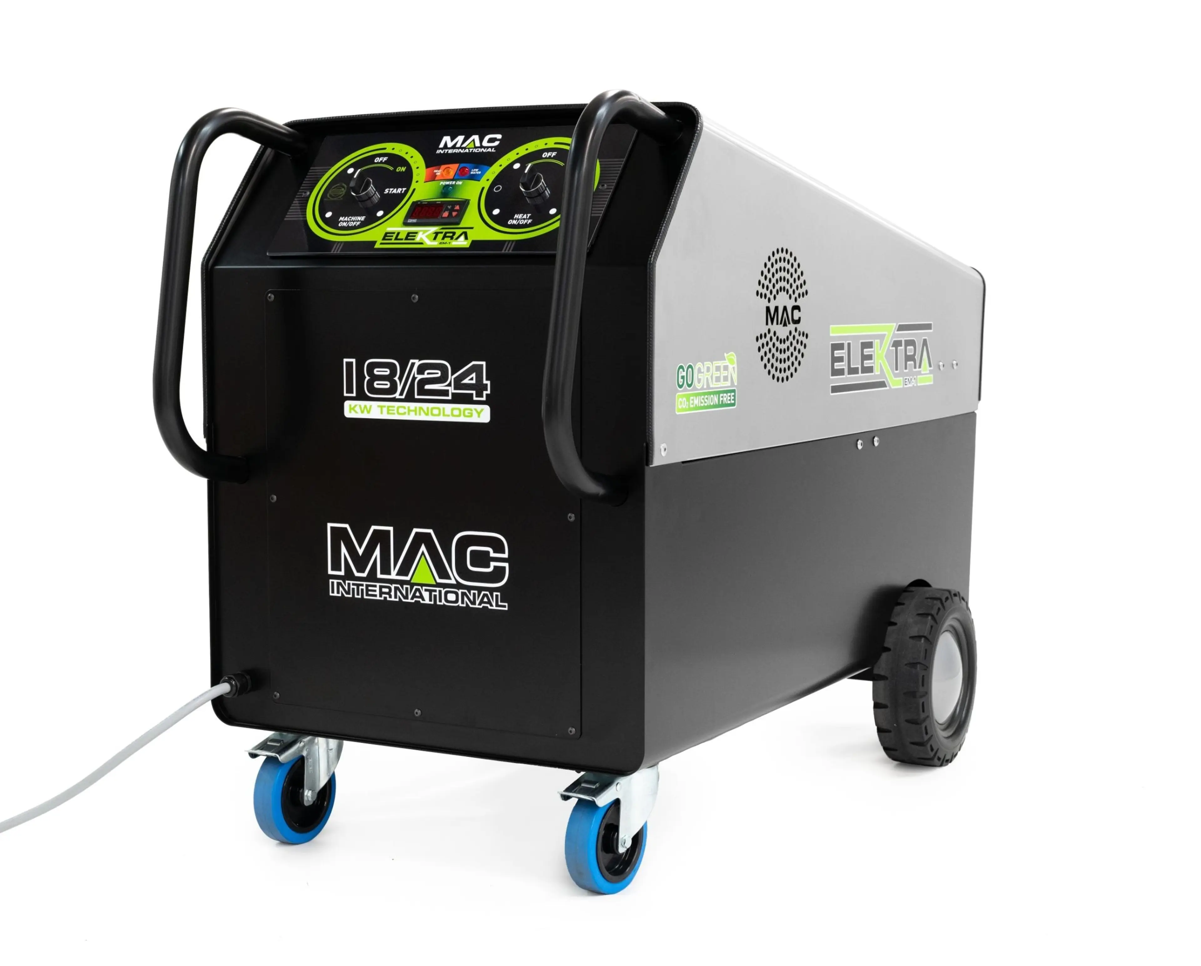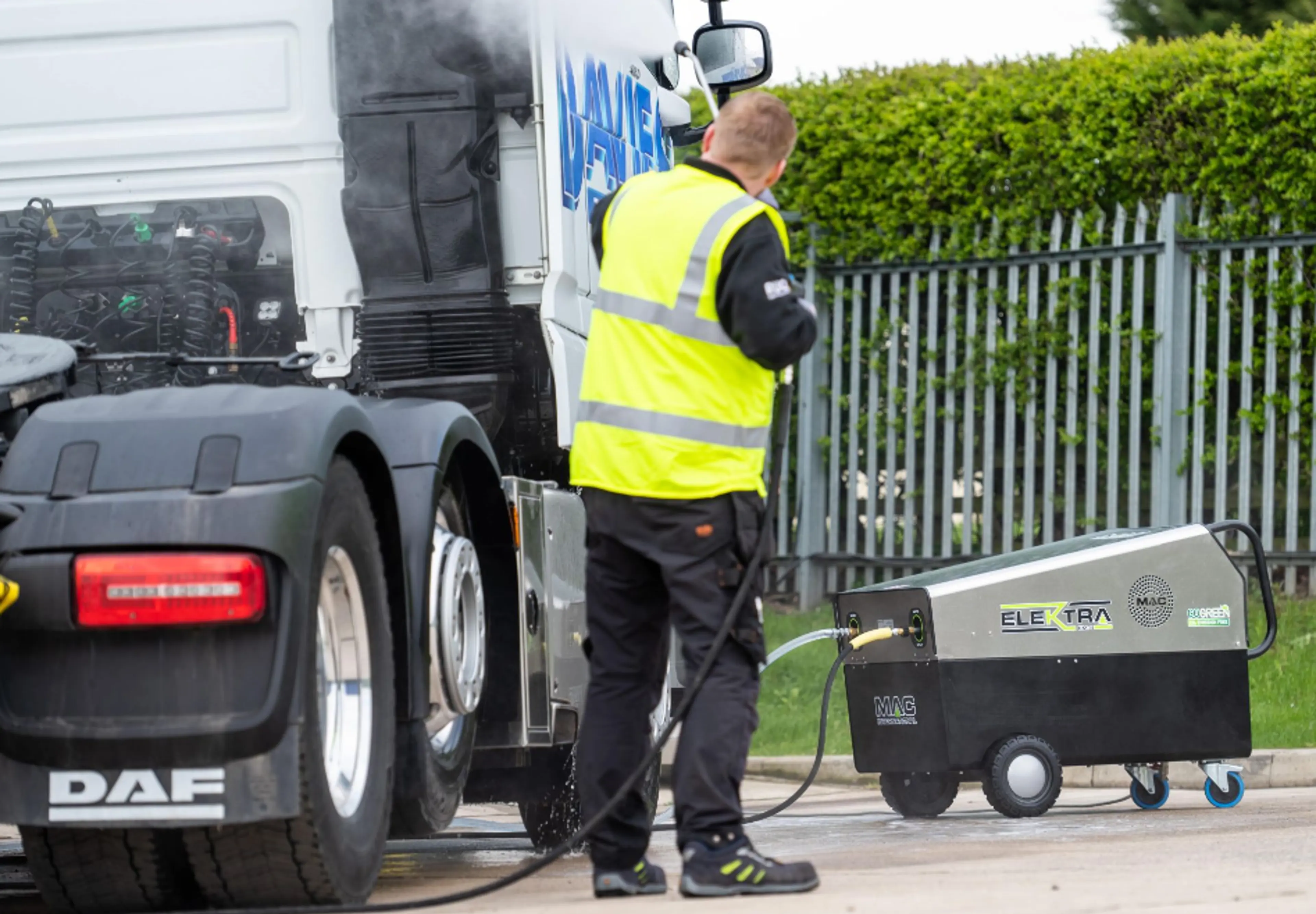 200 bar warm water, volledig elektrisch en duurzaam inzetbaar op een standaard 32A aansluiting.