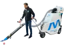 De HD Brute werkt waar het druk is. In winkelstraten, op markten, rond terrassen en langs parkbanken beweegt de carbonfiber zuigbuis soepel over alle ondergronden dankzij de 360 graden rolbal aan het uiteinde. Uw bediener loopt mee, stuurt bij en schakelt de zuigkracht draadloos op het handvat. Geen kabel, geen omslachtige handeling, geen onderbreking.