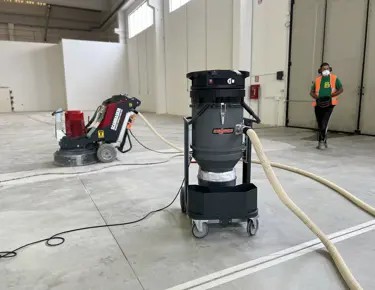 De fijnstof stofzuiger met drie motoren, automatische filterreiniging en Longopac voor bouwstof en kwartsstof.