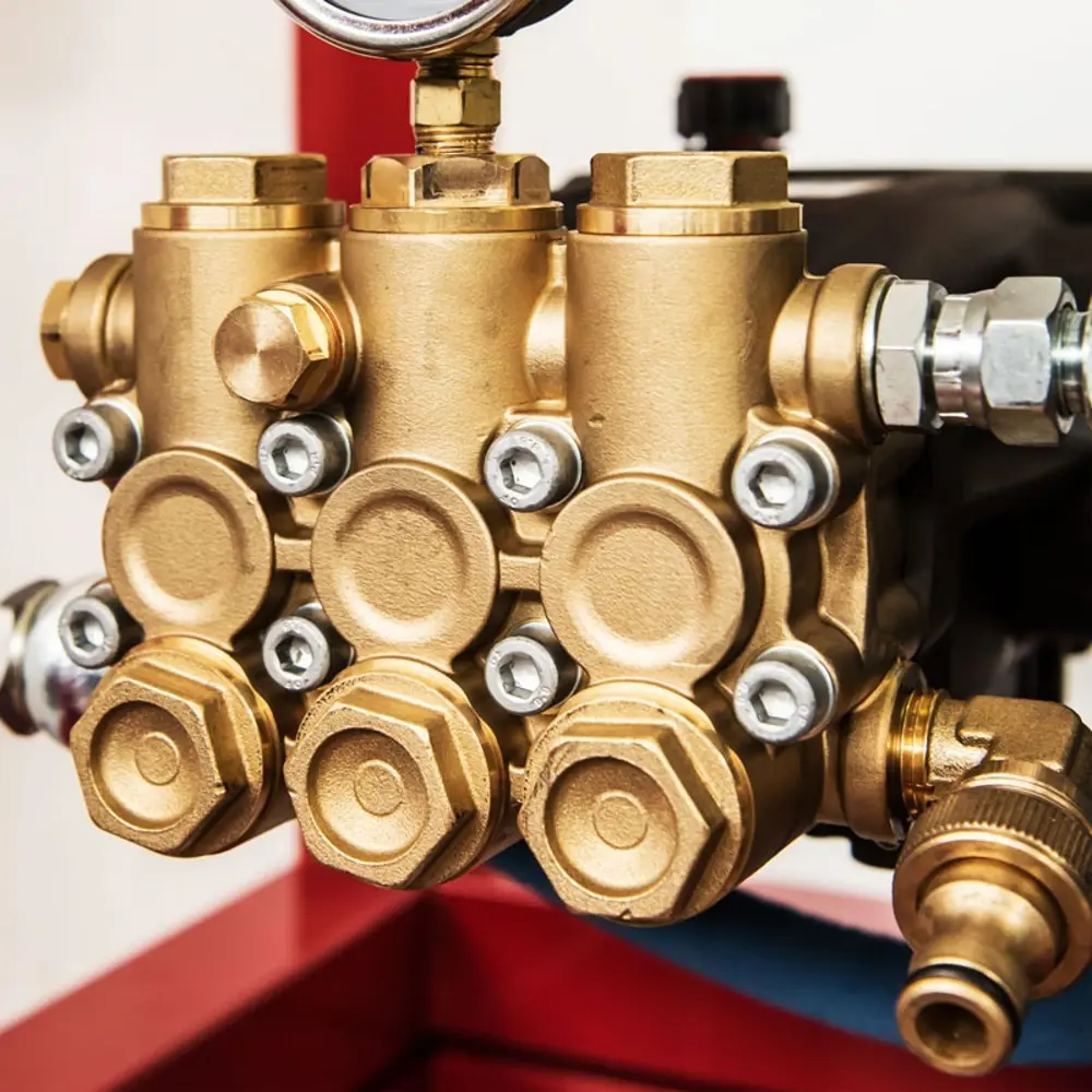 Binnenin zit dezelfde Mazzoni-bouwkwaliteit die ook in de zwaardere modellen terugkomt: een onderhoudsvrije inductiemotor met thermische beveiliging in de wikkelingen, een elastische koppeling tussen motor en pomp en een messing pompkop met keramische plunjers. Die laatste is standaard bestand tegen toevoerwater tot 65°C, waardoor de KM300 direct aan te sluiten is op een externe warmwaterbron zonder extra warmwater kit. Bij andere leveranciers is daarvoor standaard een aparte kit vereist. En de pompkop krijgt tien jaar garantie, wat geen concurrerend merk standaard biedt.