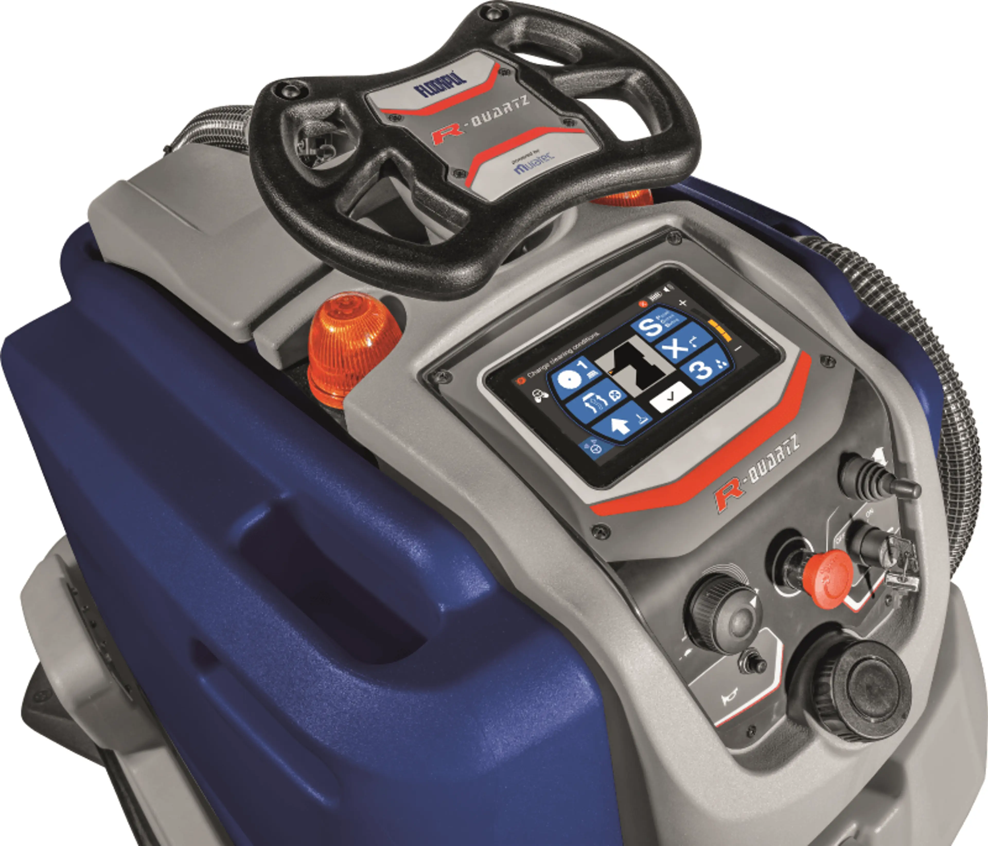 De R-Quartz 80 beweegt zelfstandig door magazijnen, winkels, fabrieken en zorginstellingen. De machine combineert het robuuste stand-on platform van de bewezen Quartz met autonome navigatie, zodat u een vertrouwde schrobzuigmachine krijgt die ook zelfstandig aan de slag gaat. Het sta-platform geeft 360 graden zicht rondom de machine, de parabolische zuigmond laat geen water achter in bochten en het touchscreen is direct begrijpelijk voor elke gebruiker. Een machine die werkt zoals u het verwacht, ook als u er niet bij bent.