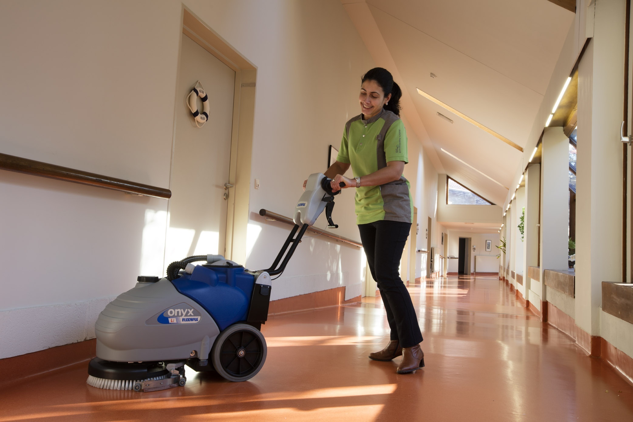 Voor retail, horeca, kantoren, laboratoria en schoonmaakbedrijven die dagelijks kleine tot middelgrote ruimtes reinigen, is de schrobmachine Floorpul Onyx 35 Lithium de machine die altijd klaarstaat.