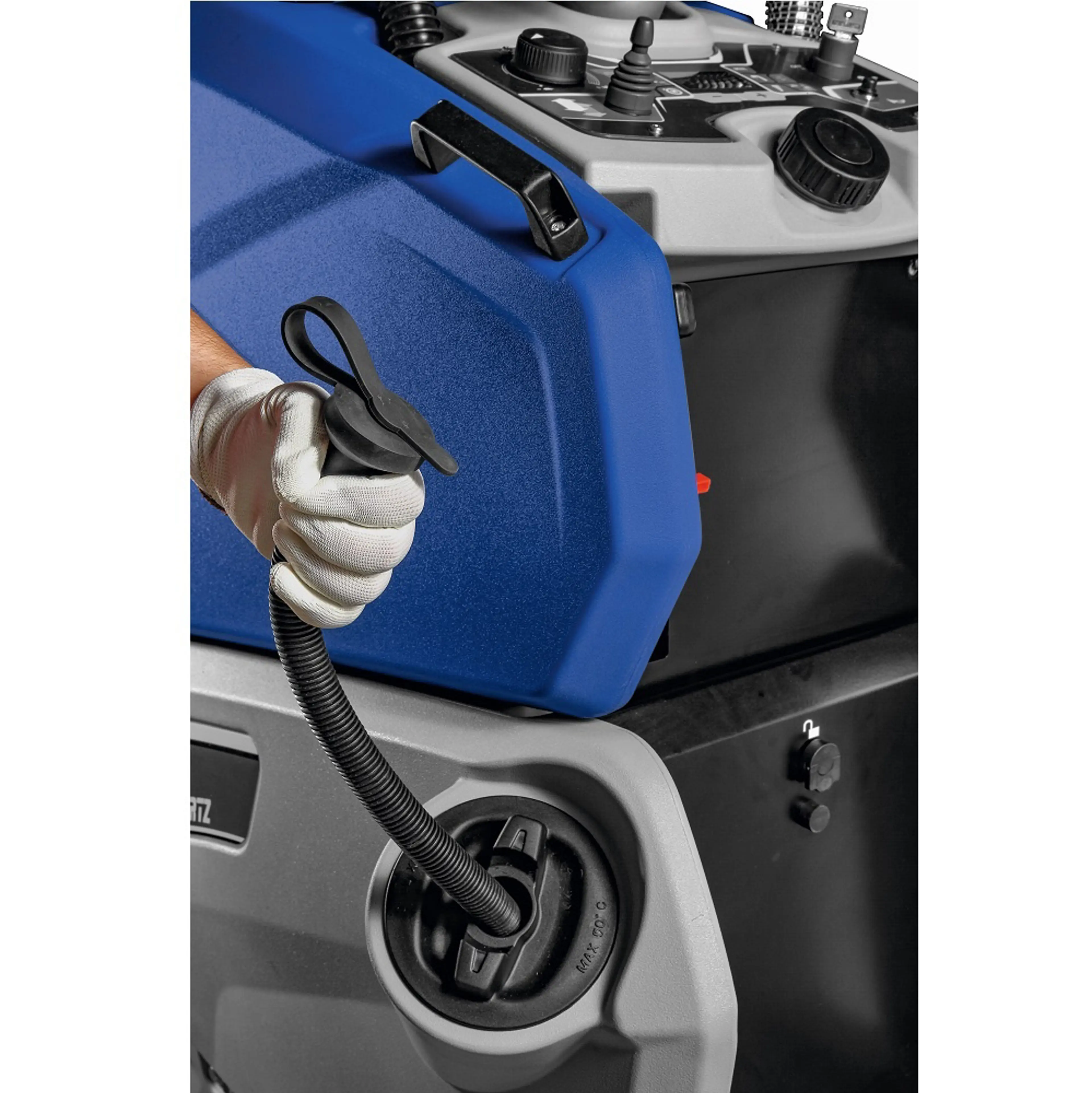 De Quartz 50 PLUS is gebouwd voor omgevingen waar de dag niet voorspelbaar verloopt. U reinigt een gang, u pakt iets op van de vloer, u stapt weer op en de machine hervat direct. Geen omslachtige herstart, geen verloren tijd. Dat is de essentie van deze machine.