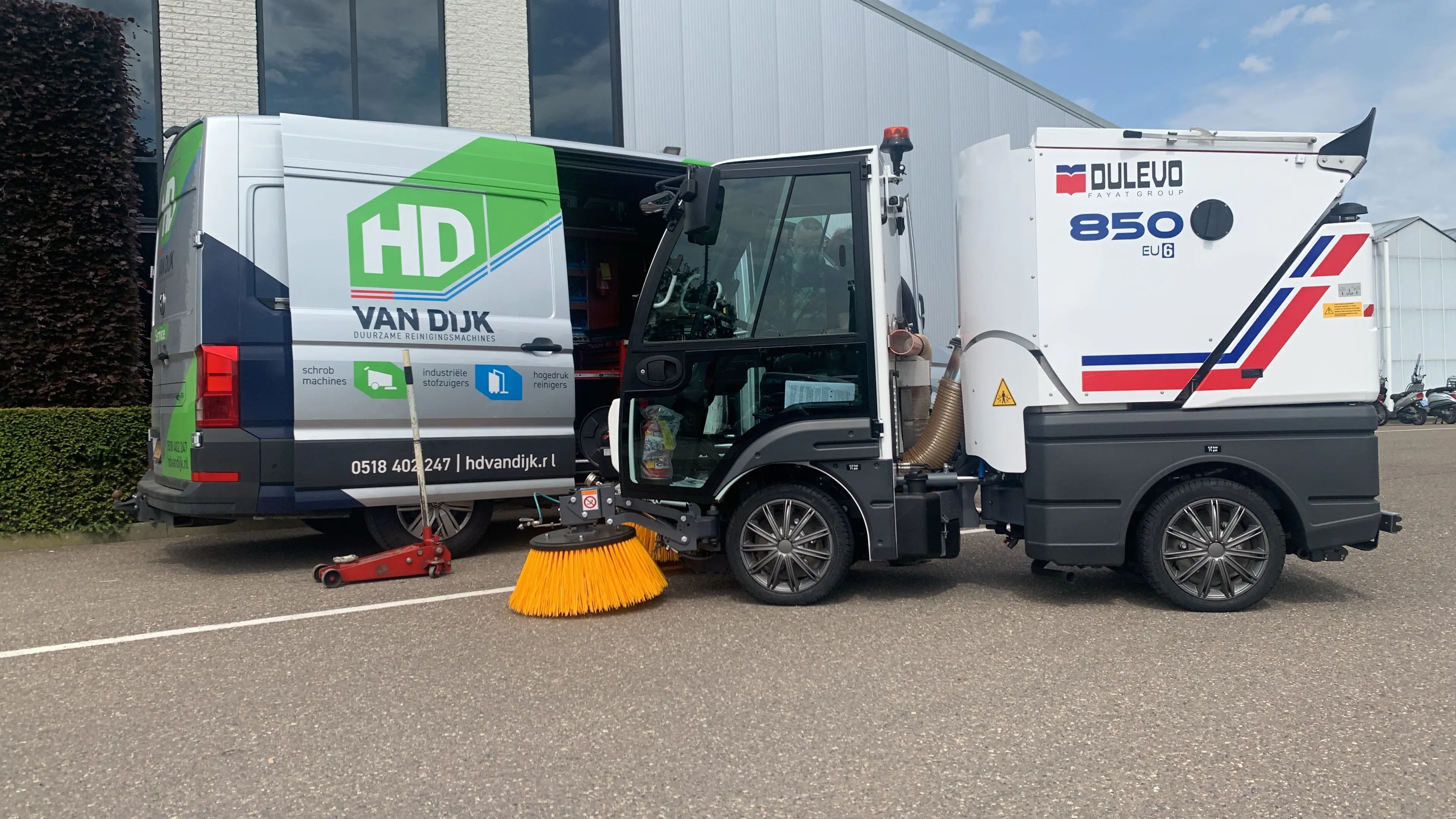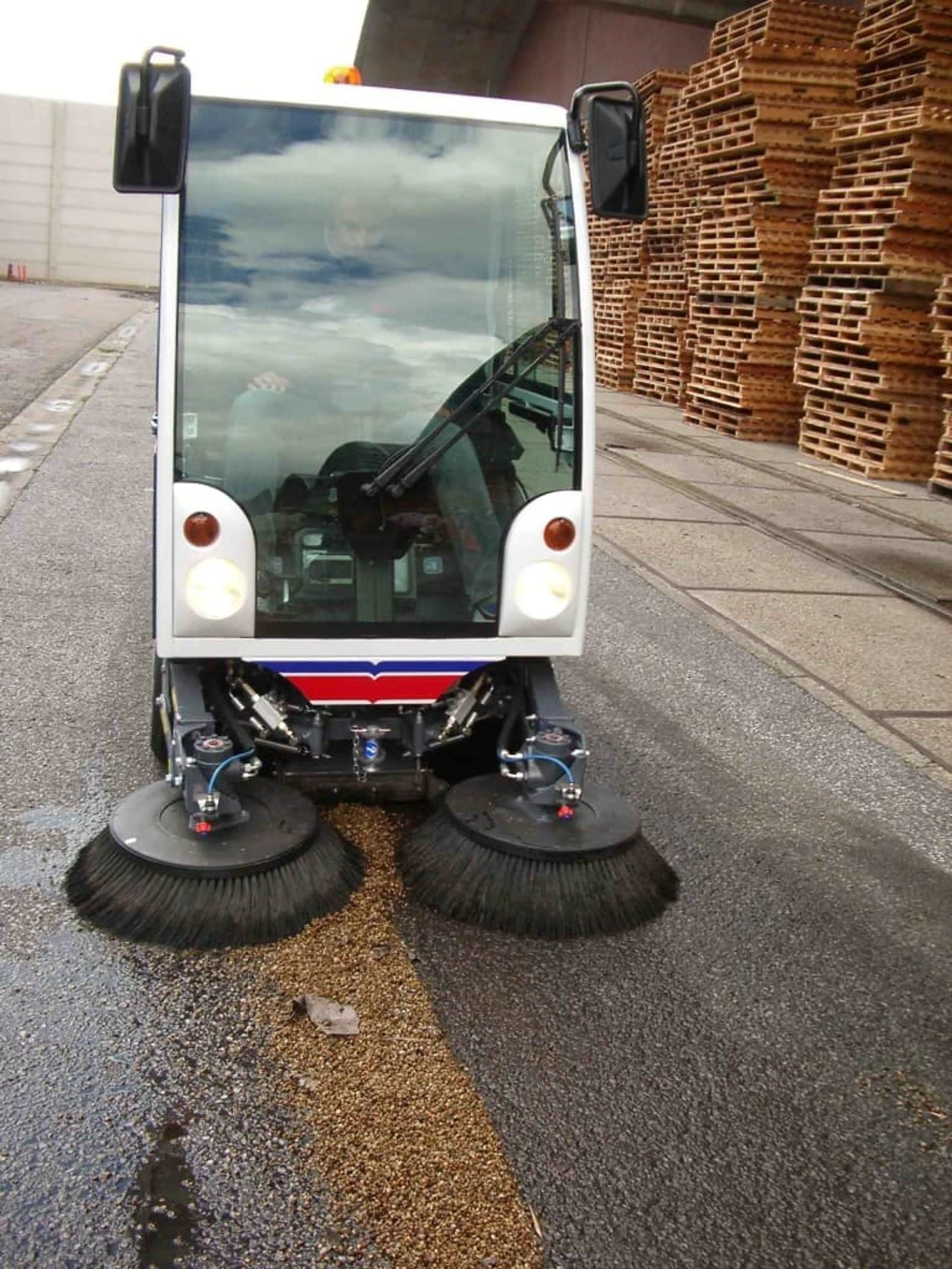 Veegt trottoirs, fietsstraten en parkeergarages waar grote machines niet passen.