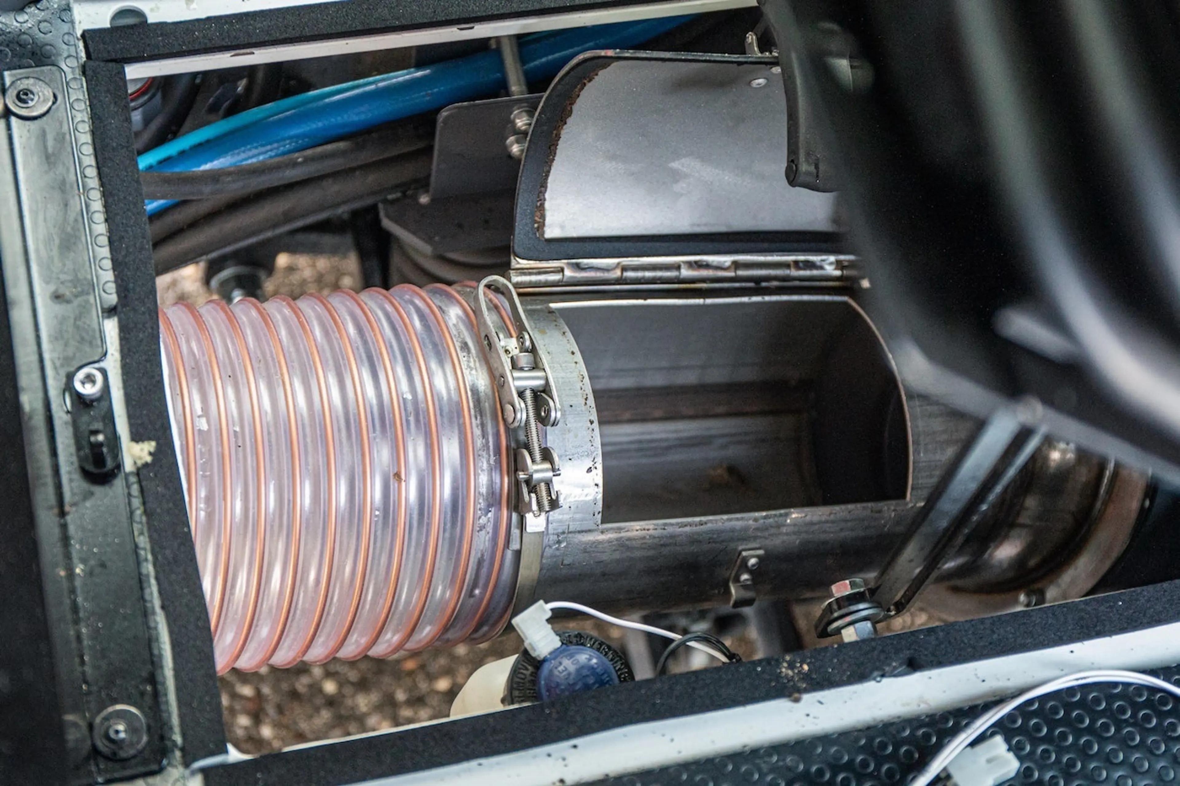 De Dulevo 850 is kleiner dan een personenwagen van standaard formaat — met een lengte van 3420 mm en een breedte van 1145 mm — maar presteert op alle vlakken als een volwaardige straatveegmachine. Het chassis van S355 staal, behandeld met kataforese voor maximale roestbestendigheid, geeft de machine de stevigheid die nodig is voor dagelijks zwaar gebruik. De vuilcontainer van roestvrij staal AISI 304 is waterdicht, gaat lang mee en is hydraulisch kanibaar tot op 1400 mm hoogte. U legt een container neer, rijdt weg, en bent klaar. De zijborstels van 730 mm diameter werken hydraulisch: uitschuiven, intrekken en snelheid instellen — alles vanuit de armleuning van de bestuurder. De kabine zit hoog en biedt uitstekend zicht rondom, ook bij het achteruitrijden dankzij de achteruitrijcamera op het dashboard.