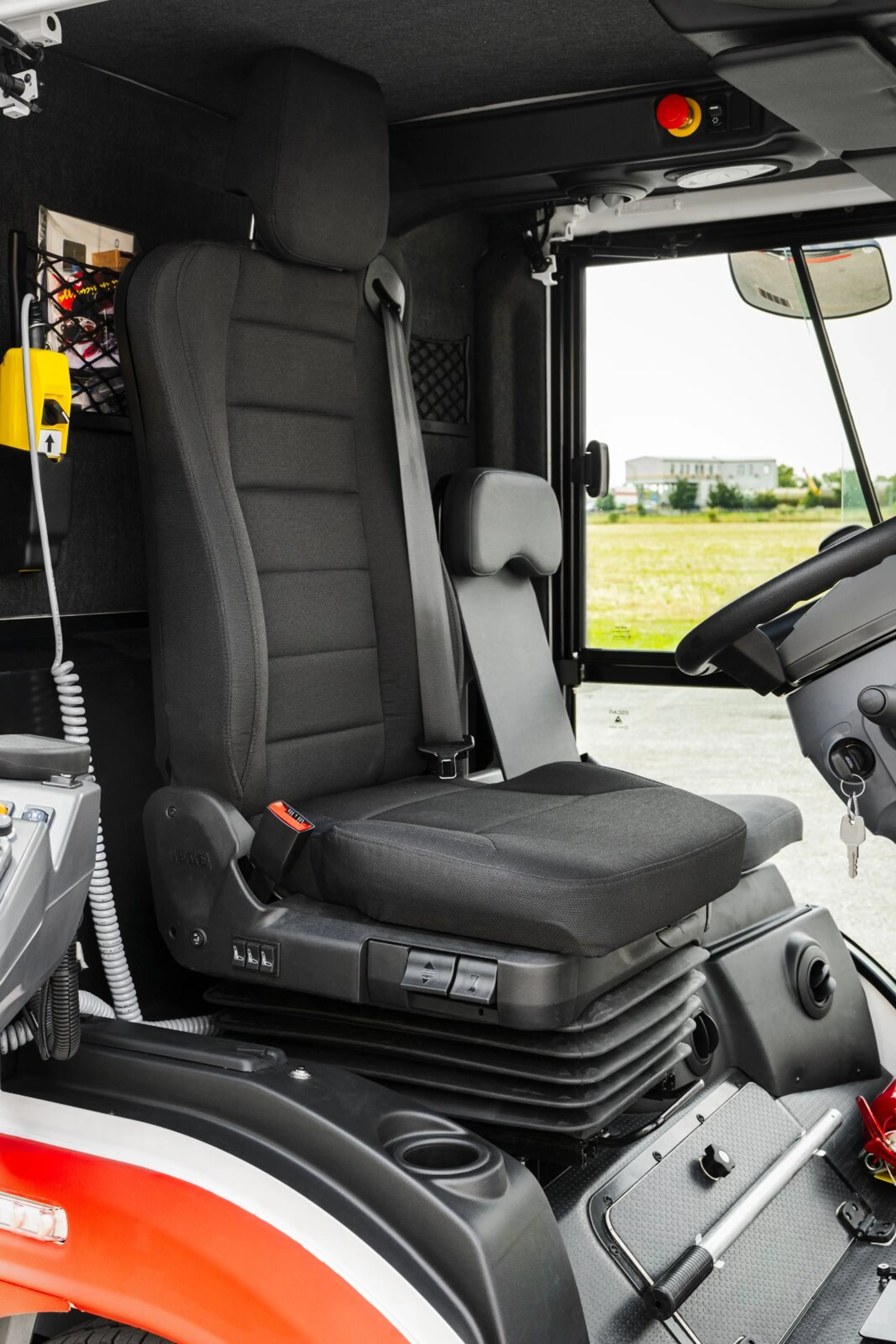 De Dzero2 3.5T is gebouwd voor de praktijk van alledag. De cabine biedt ruim zicht dankzij het glazen inspectieluik in de vloer en camera's die het zuigmond en het rijpad continu in beeld houden. De chauffeur zit comfortabel: verstelbare stoel, airconditioning met temperatuurregeling en een Bluetooth-systeem horen standaard bij de uitrusting.