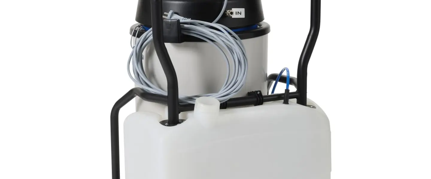 Twee motoren, 70 liter. De zwaarste tapijtextractie machine in de serie.