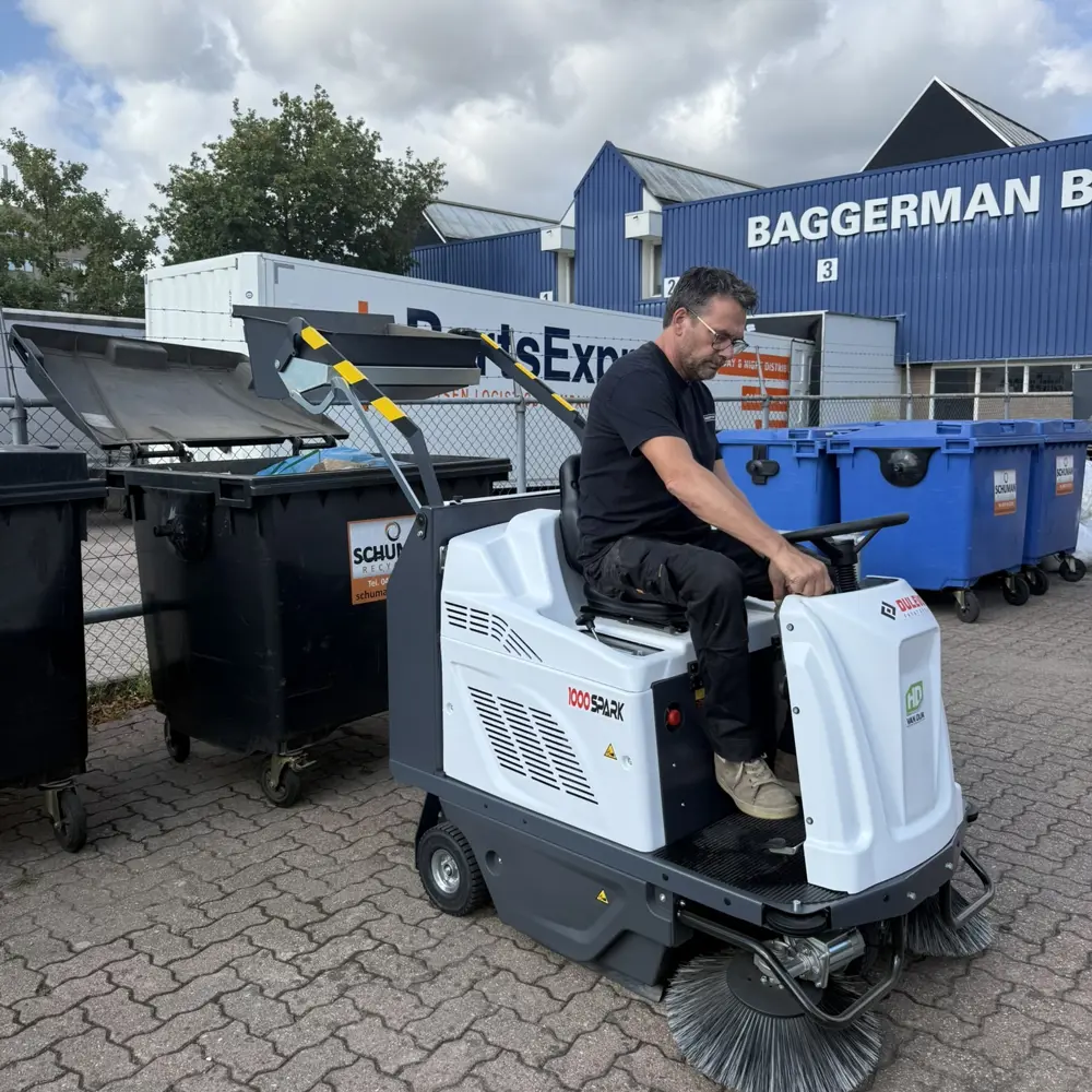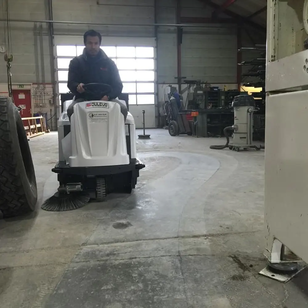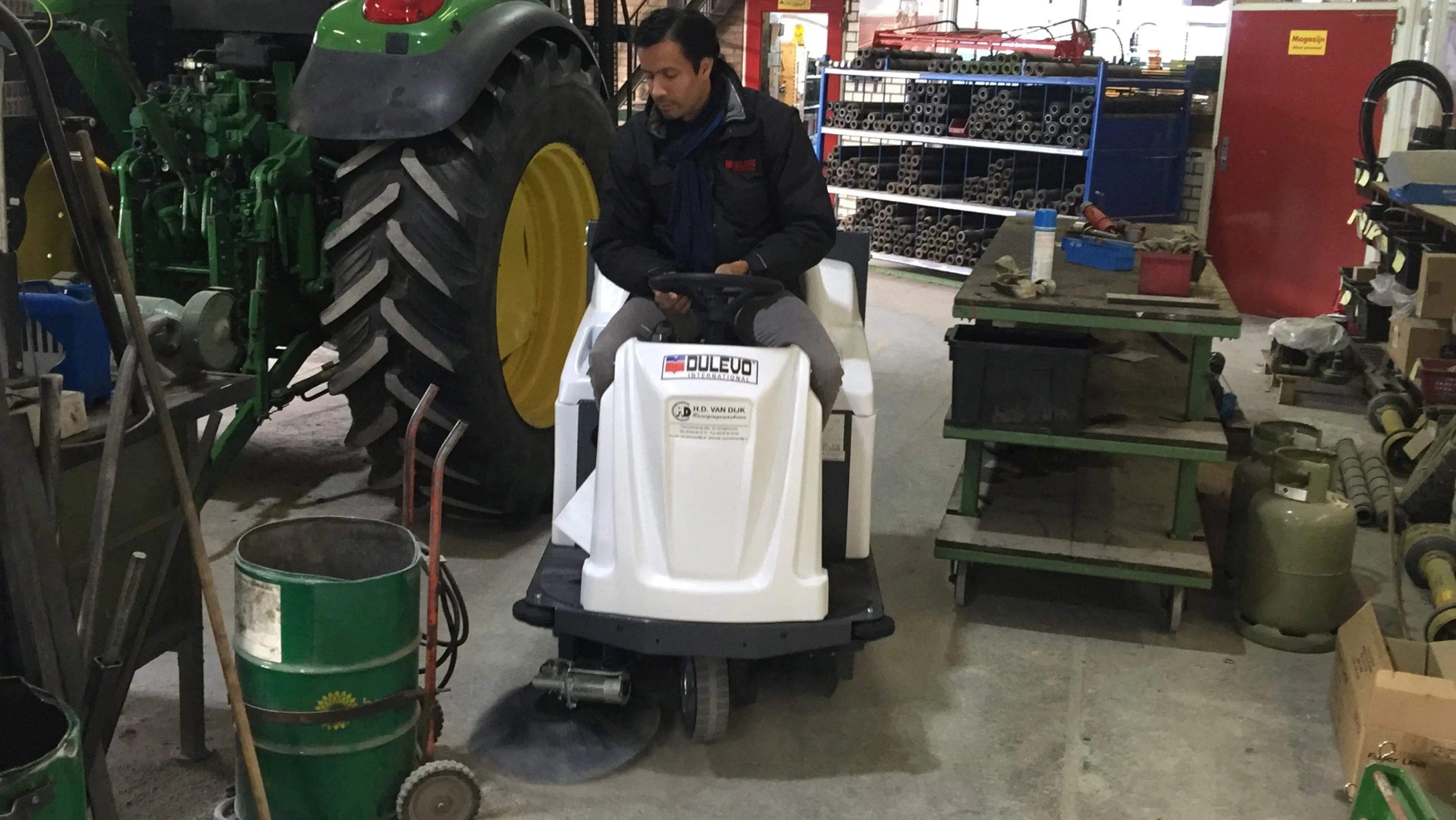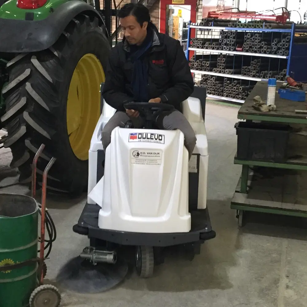In de film ziet u de machine werken in de werkplaats van een landbouwmechanisatiebedrijf. Een omgeving met wisselende vervuiling, nauwe doorgangen en de dagelijkse druk van een actief werkbedrijf. Precies de omstandigheden waarin de Dulevo 1000EH HD zijn waarde bewijst. Wilt u de machine zien op uw eigen locatie? HD van Dijk verzorgt demonstraties op aanvraag, zodat u de machine kunt beoordelen in uw eigen situatie, met uw eigen vuil.