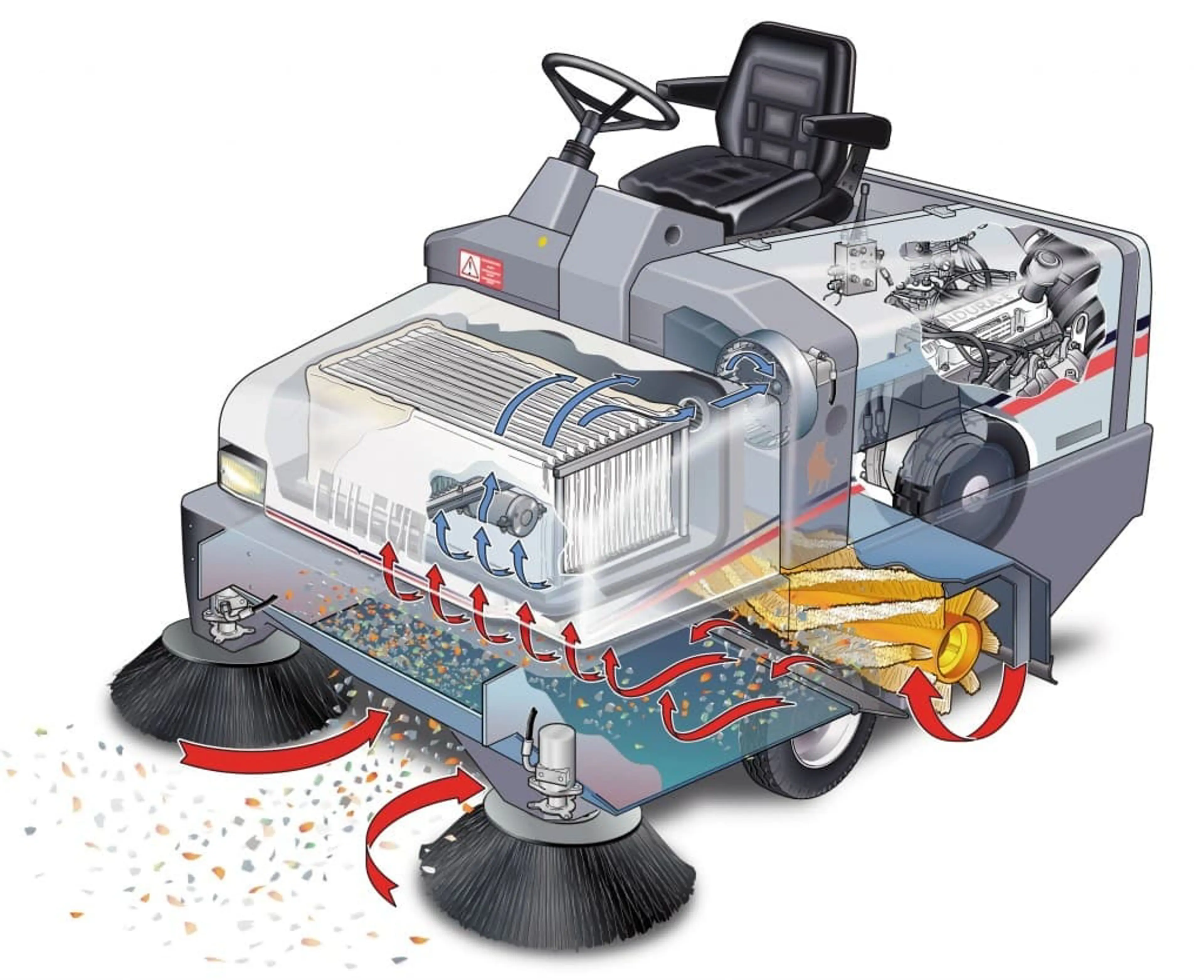 Een grote industriële opzit veegmachine, met alle slimme functies van de 90 EH.
