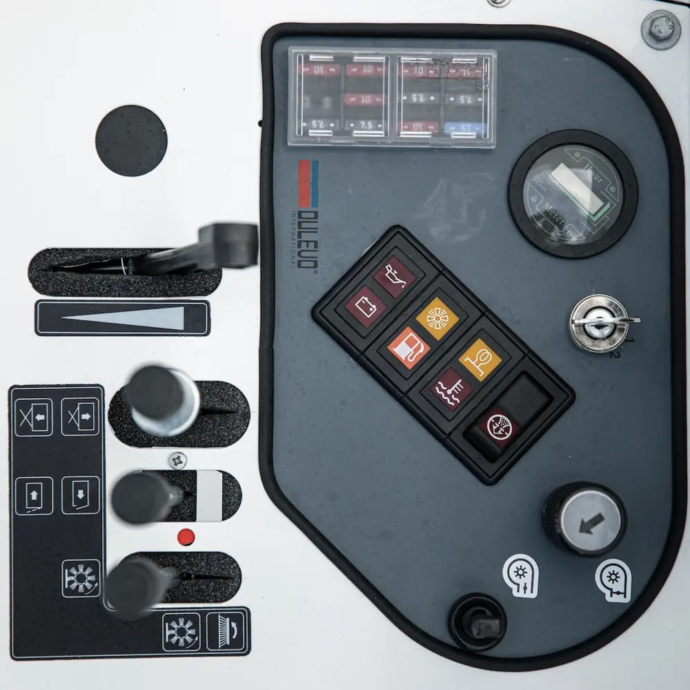 De Dulevo 1300 EH combineert een vergaarbak van 340 liter met een veegbreedte tot 1.500 mm en een volledig hydraulische aandrijving zonder elektronica. De bestuurder heeft volledig zicht op het werkoppervlak en alle bediening direct bij de hand. De hydraulisch omhooggedrukte vergaarbak maakt lossen in een externe container snel en zonder handmatig tillen. De zijborstel is voorzien van aanrijbeveiliging. De robuuste stalen frameconstructie en de watergekoelde motor maken de machine geschikt voor dagelijkse intensieve inzet in de meest veeleisende omgevingen.
