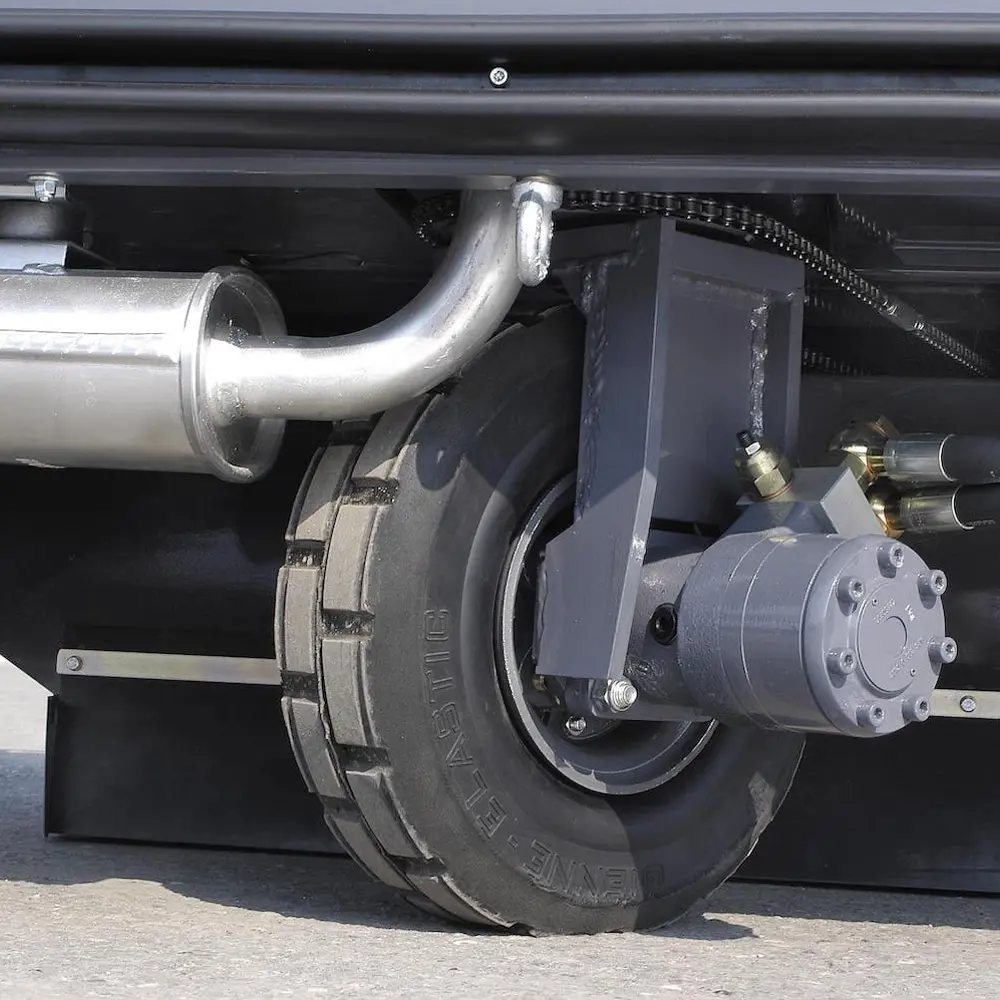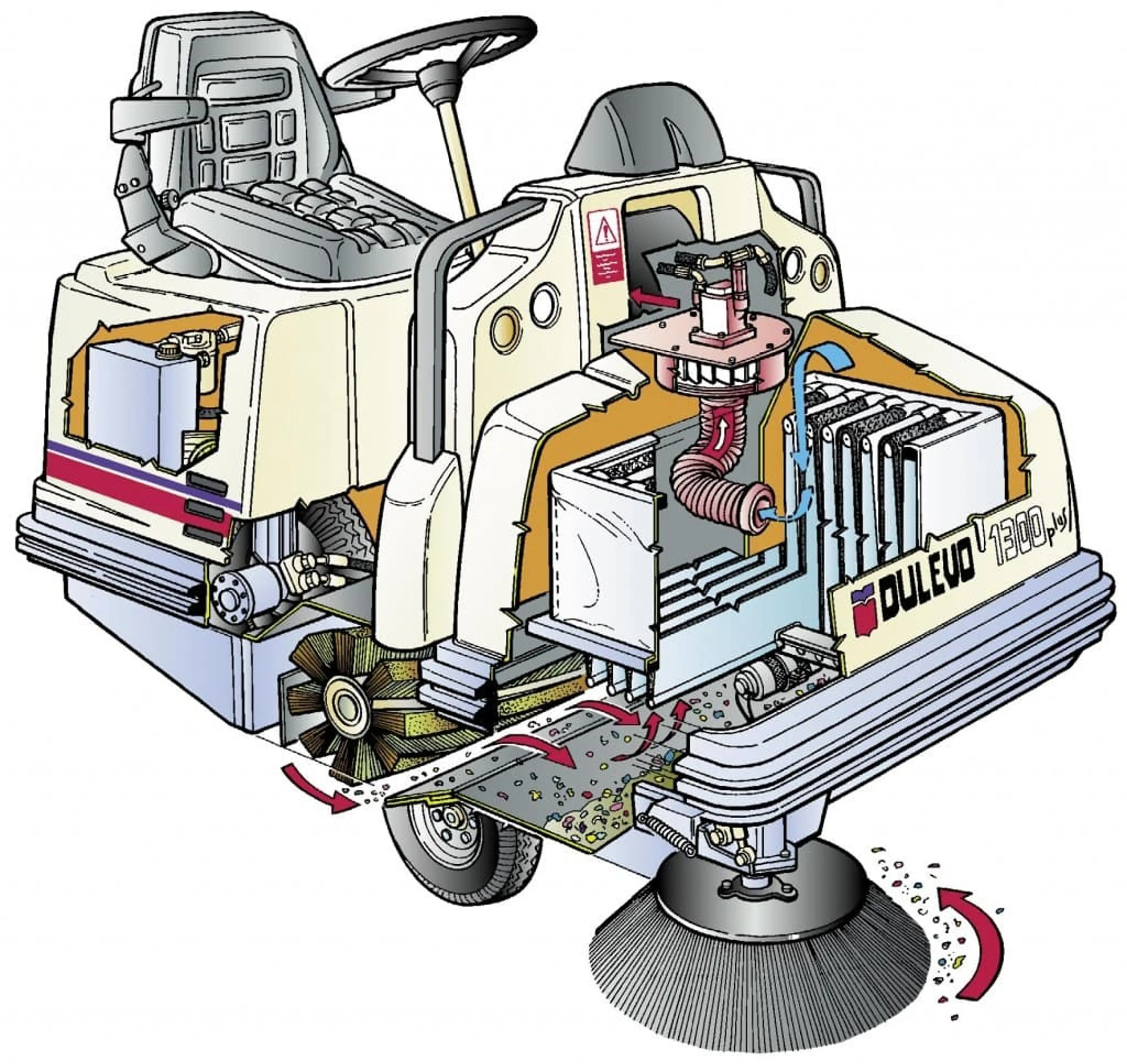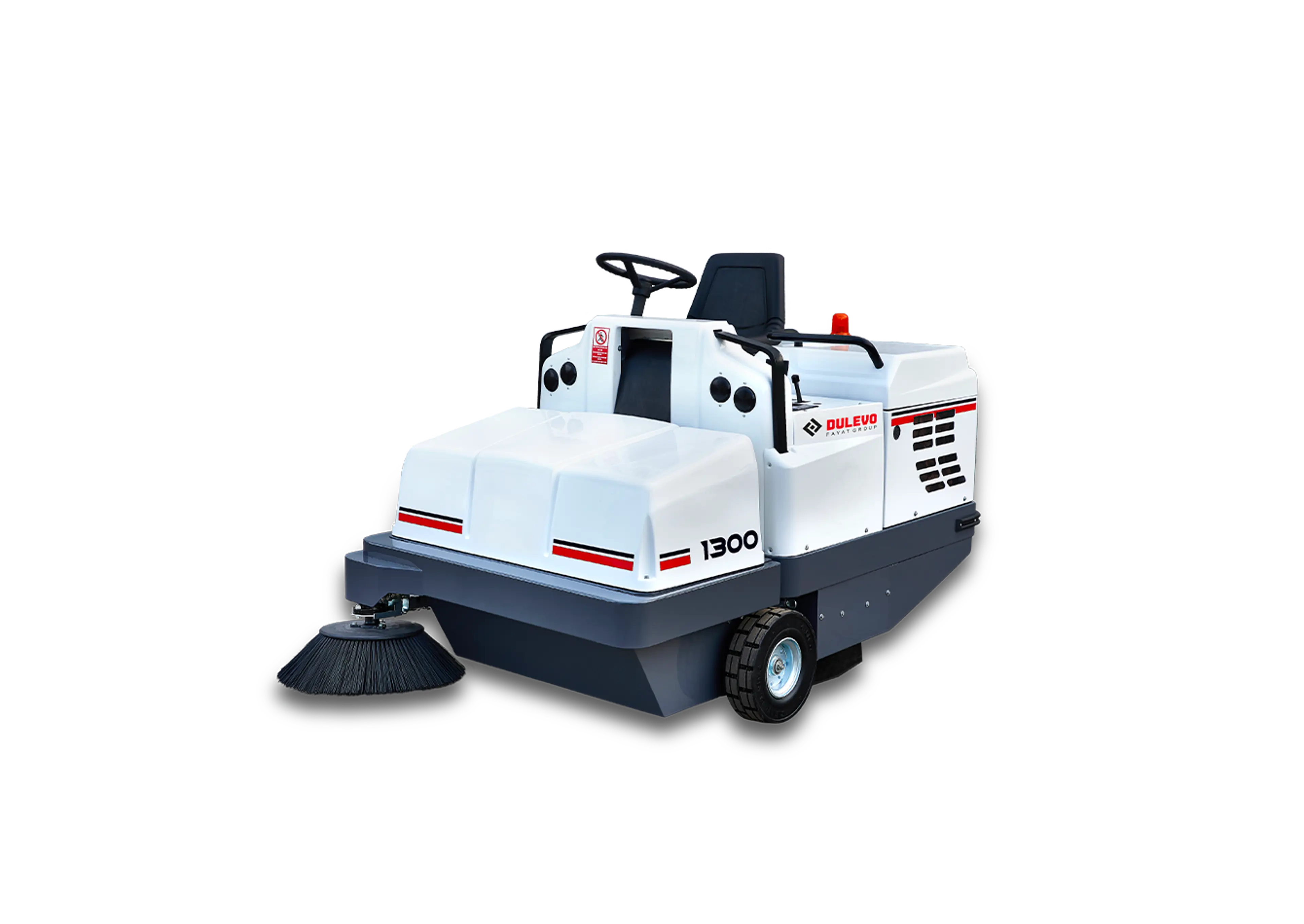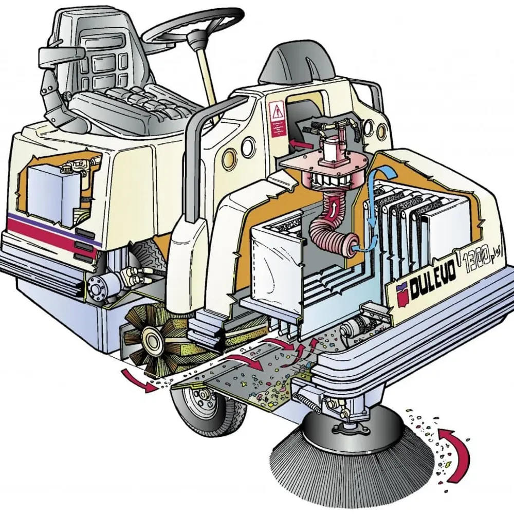 Dulevo 1300 EH: grote capaciteit, hydraulisch aangedreven en gebouwd voor de zwaarste industriële omstandigheden.