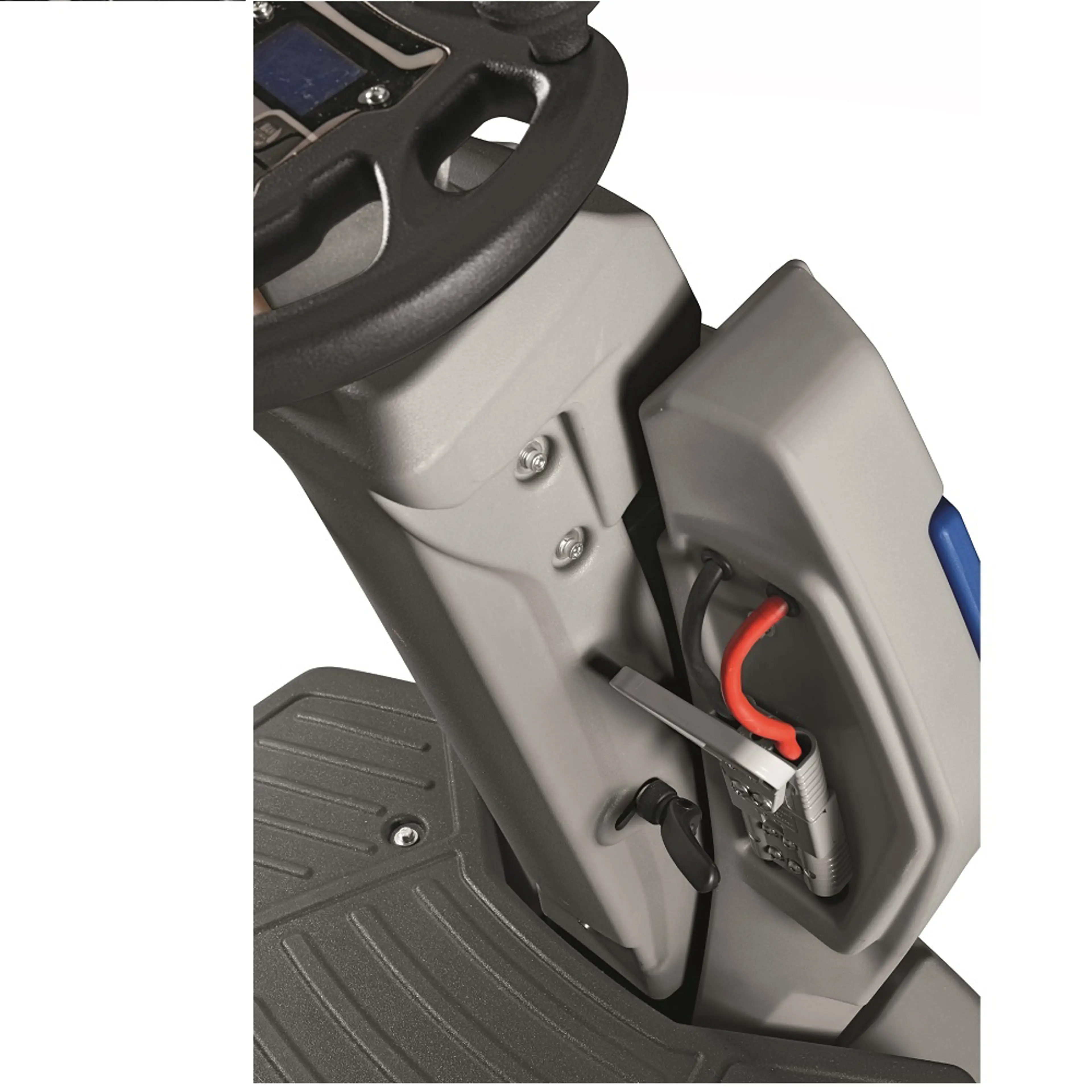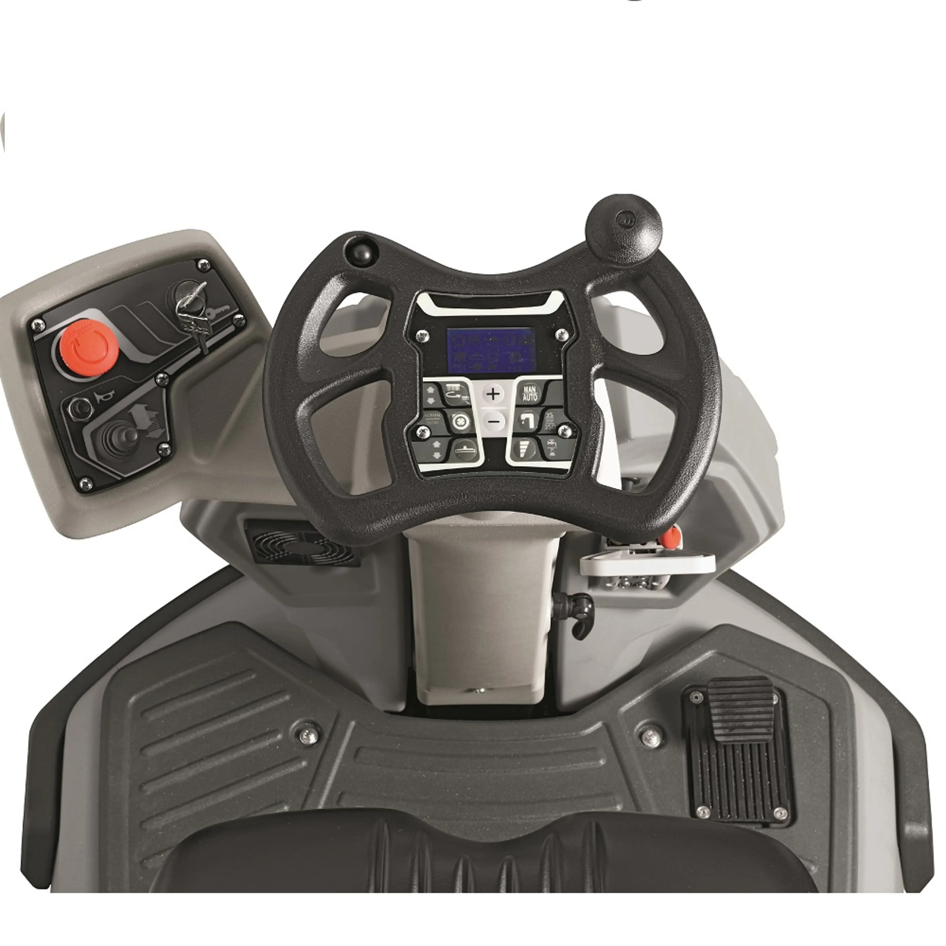 De Topaz 90 is een machine die direct indruk maakt. De robuuste bouw, de brede schijfborstels en het overzichtelijke dashboard geven aan dat dit een machine is voor serieus dagelijks werk. De ergonomisch verstelbare stoel, het stuurwiel en het voetbordes geven elke machinist een comfortabele werkpositie, ook bij langere schrobbeurten. Het AC-tractiewiel zit laag in de machine, wat de stabiliteit ten goede komt. De tanks zijn ruim gedimensioneerd en eenvoudig toegankelijk voor dagelijks onderhoud.