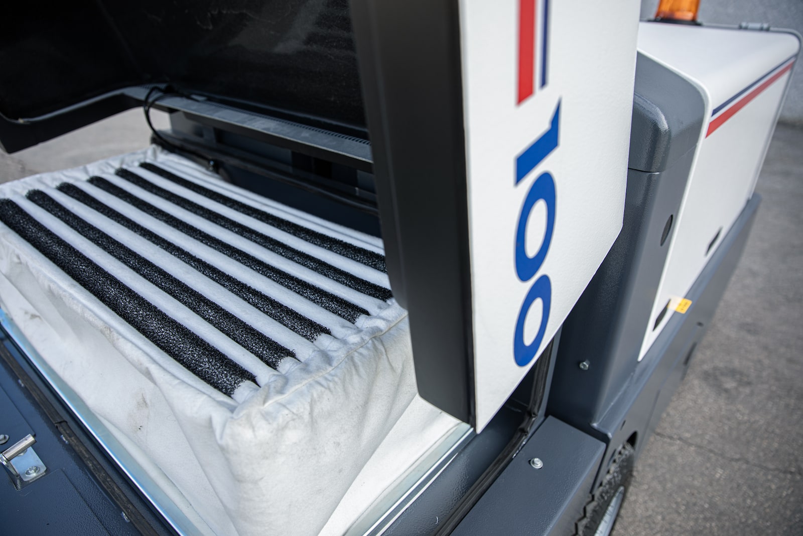 De hoofdborstel is behoorlijk groter in diameter dan de Dulevo 90 waardoor ook grovere materialen geen problemen vormen. De veegbreedte is standeert een uitmuntende stofcontrole. Wordt de machine veel buiten ingezet dan is een volledige cabine te plaatsen met airco, ruitenwissers, verwarming, radio/ cd, etc.